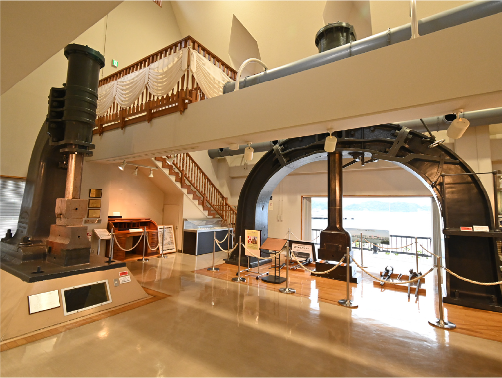 埋め立て工事は順調に進み、1867年には一番の大工事であった1号ドックの開削工事が始まります。横須賀製鉄所は、小栗の処刑後も明治政府によって引き継がれ、日本の工業化の「母体」となりました。「工場の工場」として機能し船を作るだけでなく、そこで使う工具やボルト、ナット、さらにはレンガを焼くための窯まで自前で整備していきます。なかでも熱した鉄をたたいて形を整えるスチームハンマー、鉄を削る先晩や穴をあけるドリルなどの大型工作機械は、現在も国の重要文化財に指定され、JR横須賀駅前にあるヴェルニー記念館に保存されています。ヴェルニーたちは、パン、石鹸、レンガ造りの建物などフランスの生活習慣も持ち込みます。その意味で横須賀はまさに、日本の「近代」が誕生した場所の一つだったと言えます。